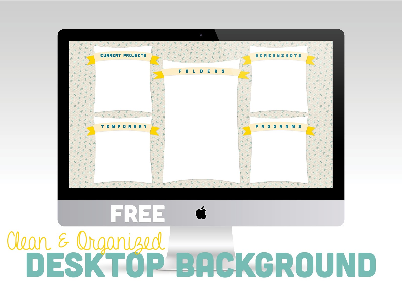 My desktop clutter always drives me nuts! Here is a background I put together to keep me organized and sane. Plus, you can download and use it FREE!